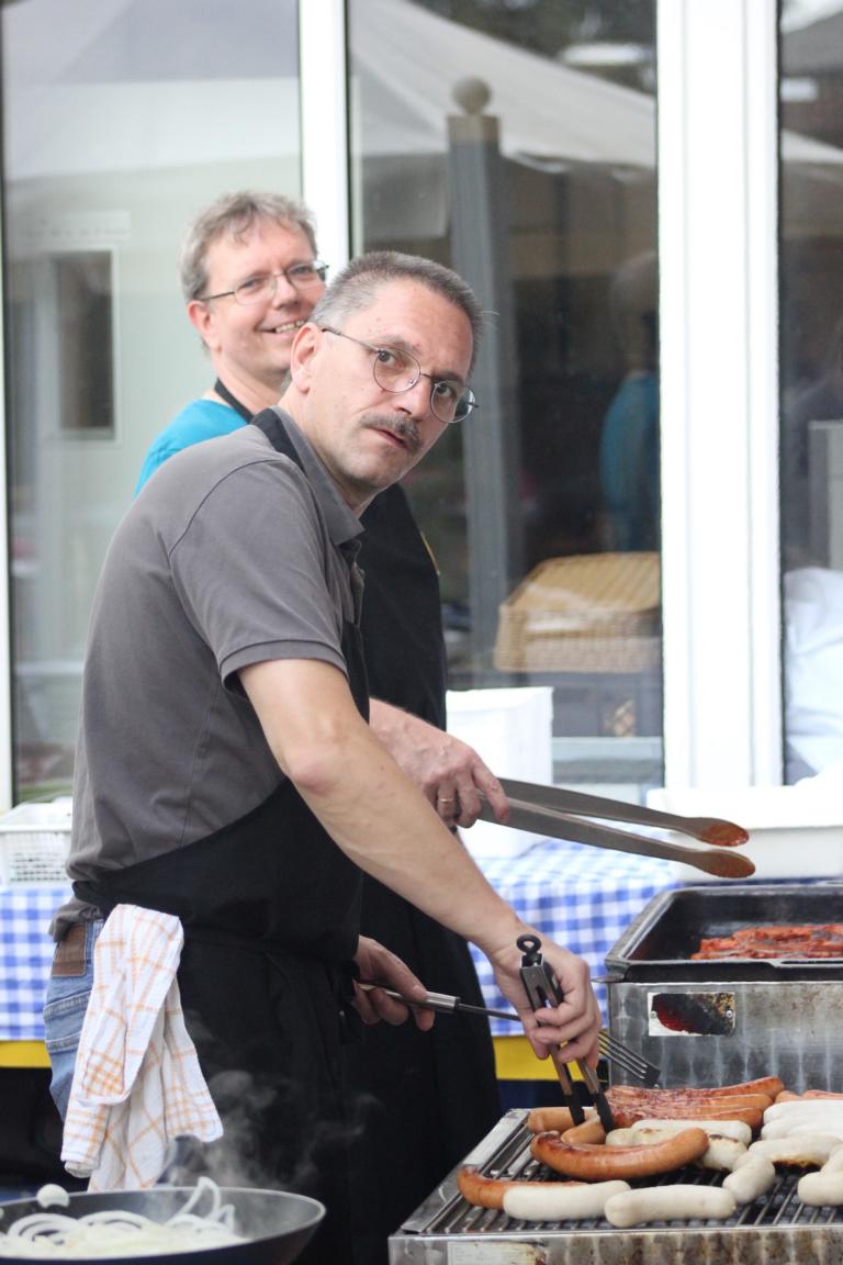 Gegen Abend heizten unsere beiden Grillmeister Dirk und Richie den Grill an und versorgten die Gäste mit leckeren Bratwürsten, Steaks und Co..