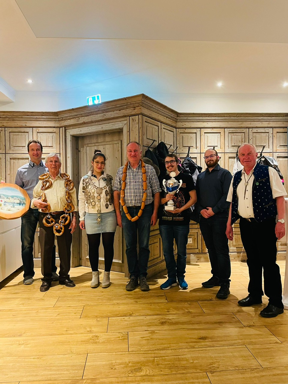Den ersten Platz und die Schützenkette sicherte sich A. Baßler mit einem 200,8 Teiler. T. Krause holte sich mit einem 266,9 Teiler den zweiten Platz und die Wurstkette und H. Eder ergatterte mit einem 316,8 Teiler die Breznkette.