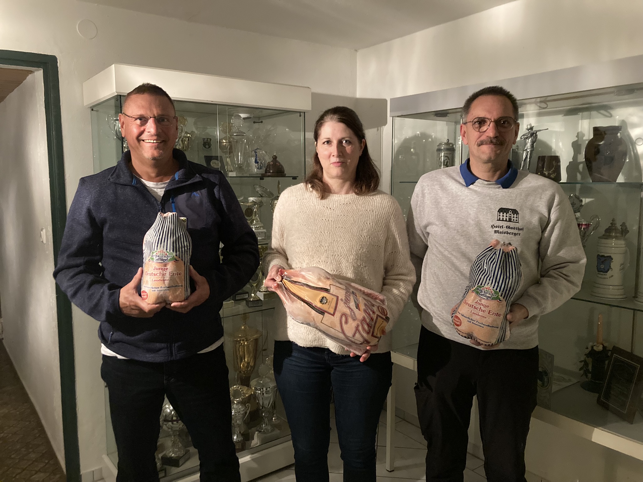 Bei ersterer konnte sich Andrea Schwab mit einem 42 Teiler die heißbegehrte Gans sichern. Der zweitplatzierte Pistolenschütze Michael Schulze ergatterte  mit einem 58,8 Teiler eine der beiden Enten. Und den dritten Platz und somit die zweite Ente, holte sich Richard Kroiß mit einem 62,2 Teiler.